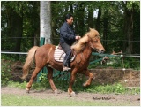 Die Pferde lernen, taktklar und gleichmäßig zu tölten und mit aktivierter Hinterhand gut unter zu treten. Pass- und Trabveranlagungen werden korrigiert. Ziel ist auch die Förderung des Raumgriffes.
